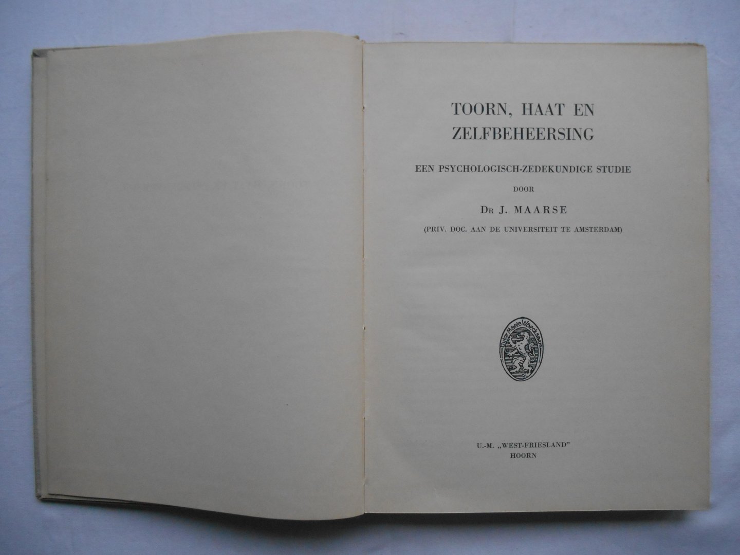Maarse, Dr. J. - Toorn, Haat en Zelfbeheersing