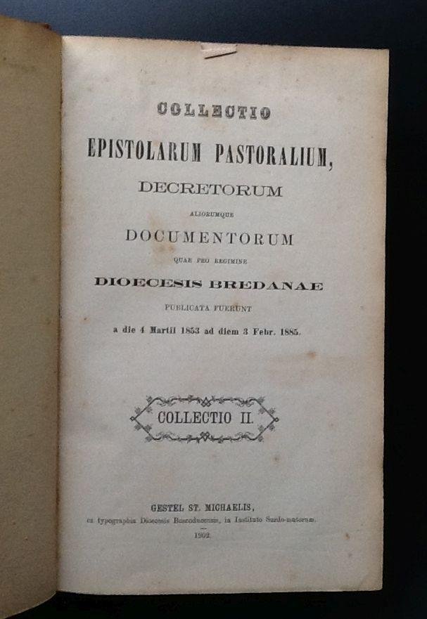 | Titel: | Collectio EPISTOLARUM PASTORALIUM: Decretorum aliorumque DOCUMENTORUM quae pro regimine DIOECECIS BREDANAE publicata fuerunt a die 4 Martii 1853 ad diem 3 Febr. 1885 Collectio II. |