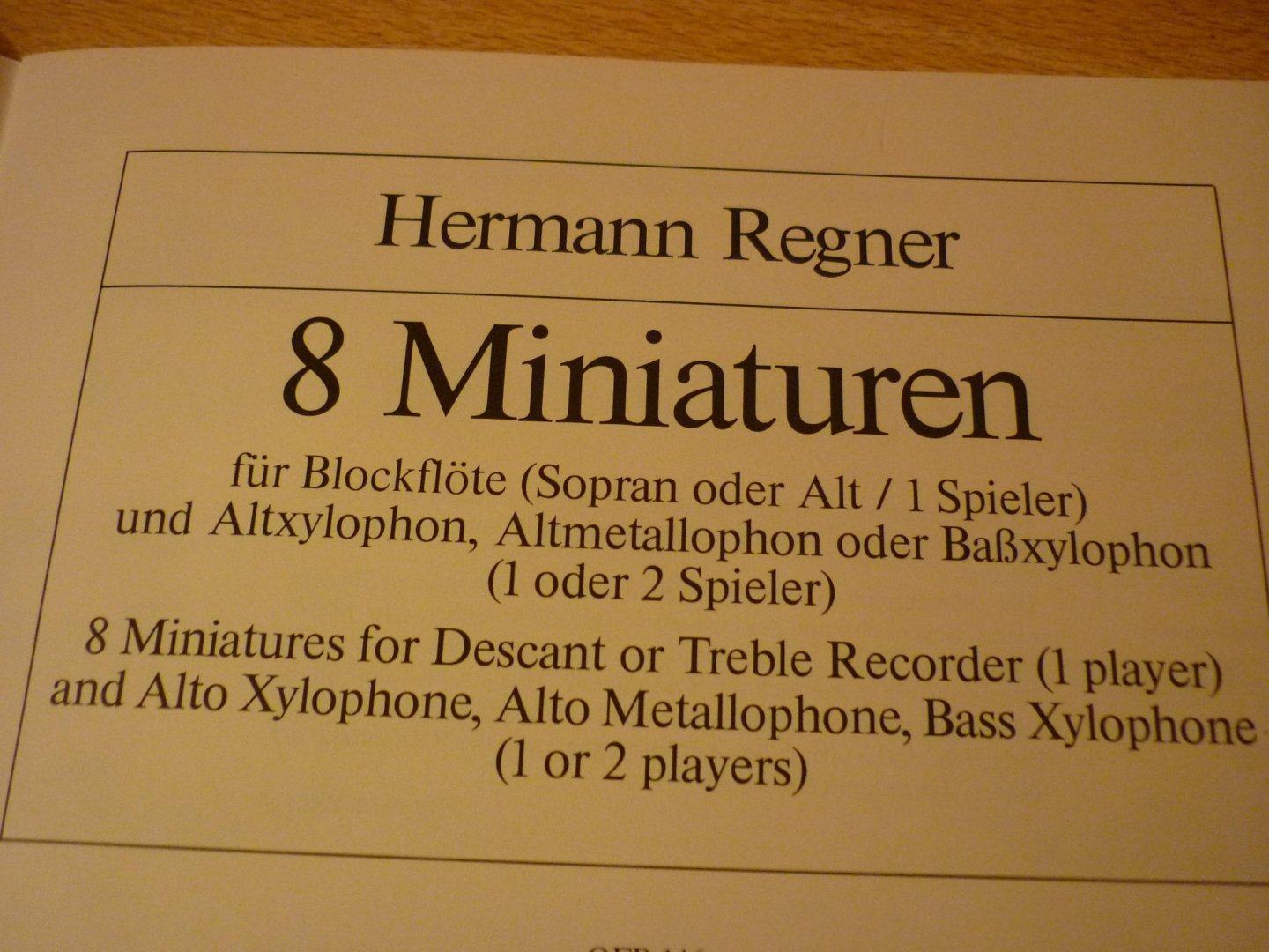 Regner; Hermann - 8 Miniaturen fur Blockflote (Soprano- or treb