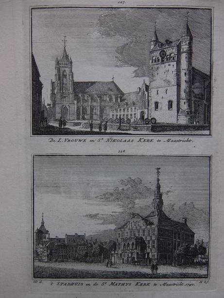 | Titel: | De L. Vrouwe en St. Nikolaas Kerk te Maastricht/ 't Stadhuis en de St. Mathys Kerk te Maastricht, 1740. |