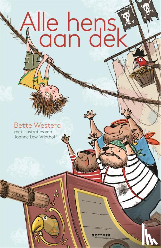 Flaptekst Om zelf te lezen of voor te lezen: laat je meevoeren door deze bekroonde klassieker van succesvol schrijfster Bette Westera.Peter-Paul piraatPeter-Paul is een onopvallend jongetje met pluizig piekhaar, best wel grote oren en een nog grotere fantasie. Hij weet al wat hij later worden wil: piraat. Daar moet hij van zijn meester een opstel over schrijven. Als het opstel door een wonderlijke speling van het lot terechtkomt bij de kapitein van piratenschip Draculus Drie, mag Peter-Paul - PéPé vanaf nu - meteen inschepen. De bemanning, bestaande uit Hens 1, Hens 2 en Hens 4, leert hem alles over het leven aan boord: enteren, zeilen strijken en hozen. Maar waar is Hens 3 eigenlijk gebleven?Bette Westera & Joanne Lew-VriethoffAlle hens aan dek werd geschreven door Bette Westera, die in 2015 de Gouden Griffel won. In het boek staan tekeningen van Joanne Lew-Vriethoff. Het werd bekroond met een Vlag & Wimpel van de Griffljury. Een heerlijk kinderboek dat zowel geschikt is om voor te lezen (vanaf 5 jaar) als om zelf te lezen (vanaf 7 jaar). |