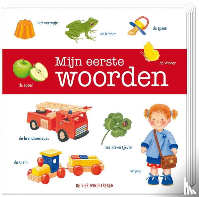 Flaptekst In dit beeldwoordenboek van karton worden meer dan tachtig alledaagse voorwerpen benoemd. De realistische illustraties in vrolijke kleuren staan op een contrasterende witte achtergrond en zijn in hun geheel afgebeeld, waardoor kinderen de dingen gemakkelijk zullen herkennen. Zo leren ze spelenderwijs onder andere gebruiksvoorwerpen, eten en kleding uit hun omgeving (her)kennen. |