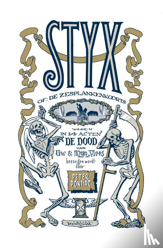 Flaptekst Peter Pontiac (1951-2015) werkte sinds lange tijd aan een graphic novel over de dood - zijn eigen ernstige ziekte, die zich in 2010 onverwachts openbaarde, inbegrepen.Naast groot tekenaar was Pontiac, zo blijkt in Styx meer dan ooit, ook een begaafd schrijver. Zijn archaïsche, ietwat Reviaanse correspondentie met onder anderen zijn broer Joost Pollmann, een bevriend kunstenaarspaar, vormgever Fake Booij en uitgever Joost Nijsen over de wording van Styx en zijn eigen ziekteverloop, is even geestig als schrijnend. Als aanvulling op de graphic novel stelde Fake Booij in samenwerking met Pontiacs weduwe Ipie uit deze correspondentie en prachtige schetsen een ontroerende bloemlezing samen, als tweede deel van dit schitterend vormgegeven boek. Joost Pollmann schreef bij dit deel een treffende inleiding, tevens in memoriam.Styx is een must voor iedereen die de Nederlandse strip een warm hart toedraagt. En voor wie net als Pontiac onverschrokken is... zelfs in het aangezicht van de man met de zeis. |