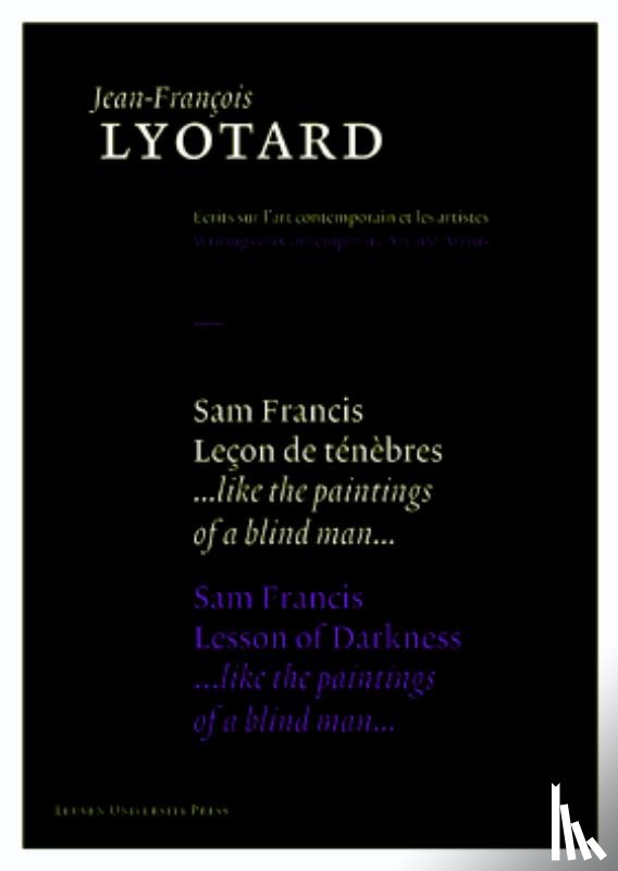 Flaptekst Sam Francis. Lesson of Darkness is the second of a series of five volumes, bringing together the most important writings of Jean-François Lyotard (1924-1998) on contemporary art and artists. This second volume introduces forty-three poetical reflections and comments on the work of the well-known Californian painter Sam Francis (1923-1994). This edition reprints the English text published in 1993, which is no longer available, face to face with the previously unpublished French original. It also reproduces in full colour all forty-three paintings commented upon by Lyotard. |