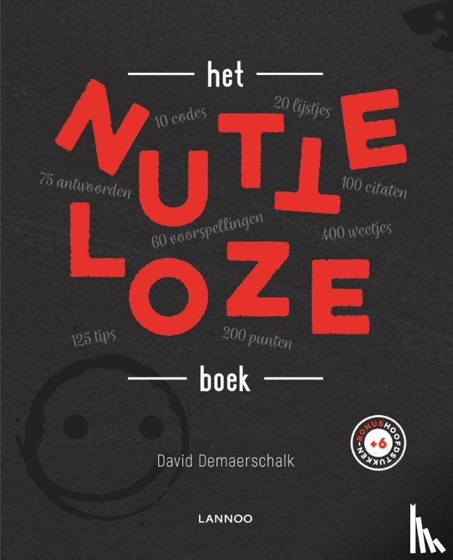 Flaptekst Het meest nutteloze boek dat je absoluut moet hebben! Nutteloze dingen maken je leven rijker, fleuriger en gevulder. Wist je dat koeien jaarlijks meer mensen doden dan haaien? En weet jij wat een novenonagintanongentiljard is? Scoor punten met de nutteloze quiz en verdiep je in de meest nutteloze quotes die je beslist moet kennen. Het nutteloze boek staat boordevol nutteloze dingen die je absoluut moet weten. |
