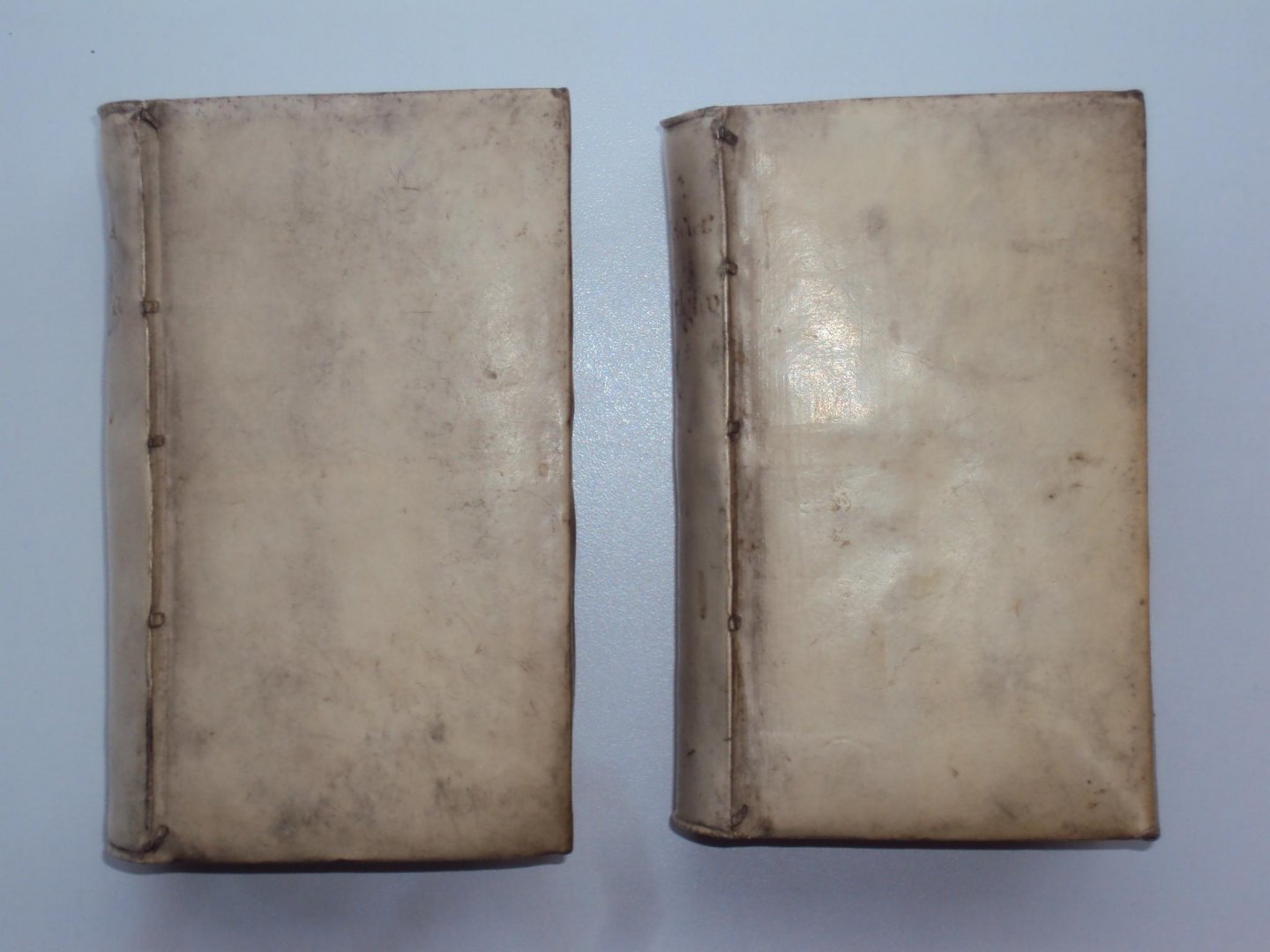 Famiano Strada - De bello Belgico. Decas prima & Decas secunda - Rome, Hermannum Scheus/ haeredes Francisci Corbelletti, 1653/ 1658 - 2 volumes - (8),520,(128),(4 blank) / (12),642,(89) pp - overlapping vellum - 14 x 8,5 cm