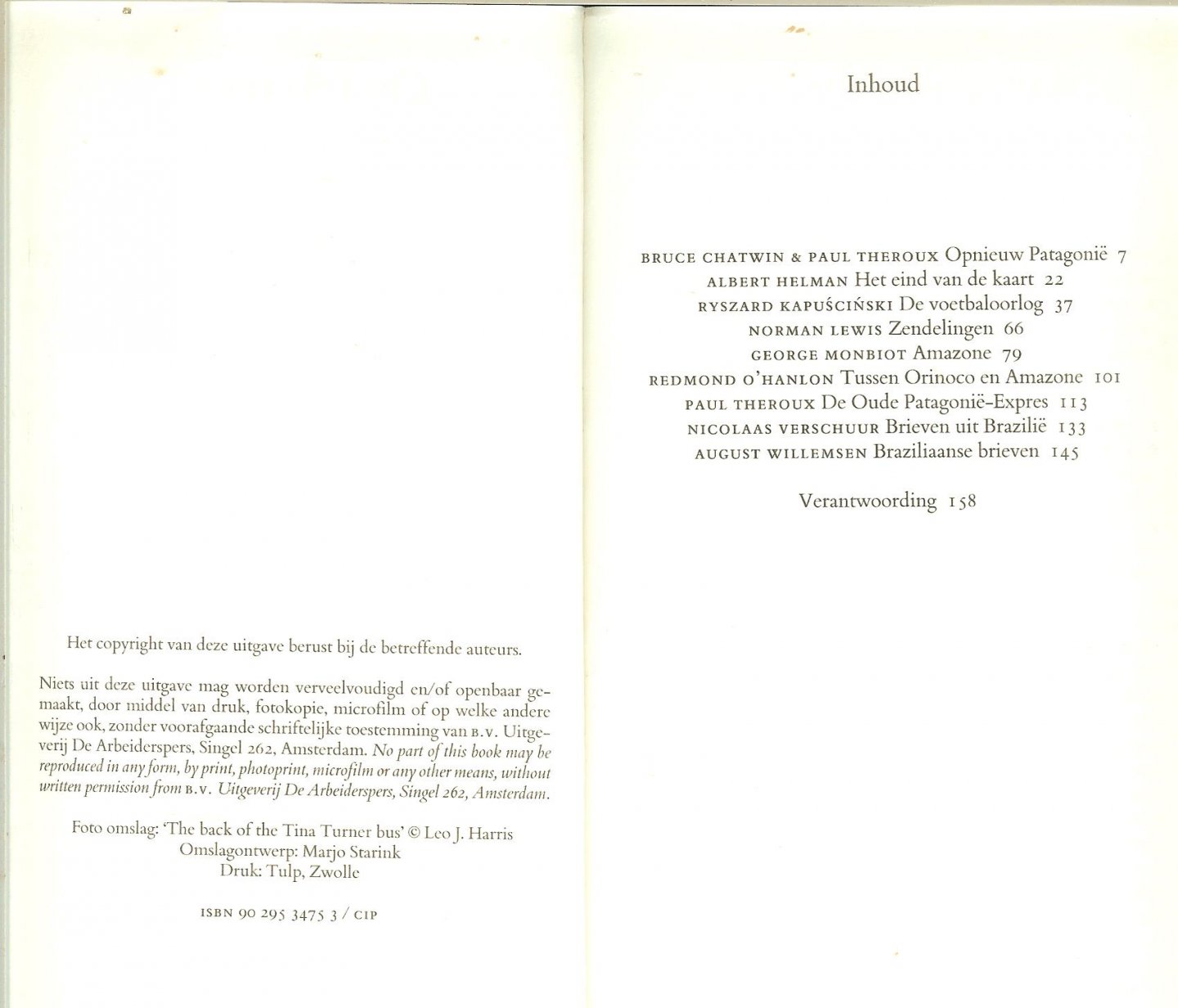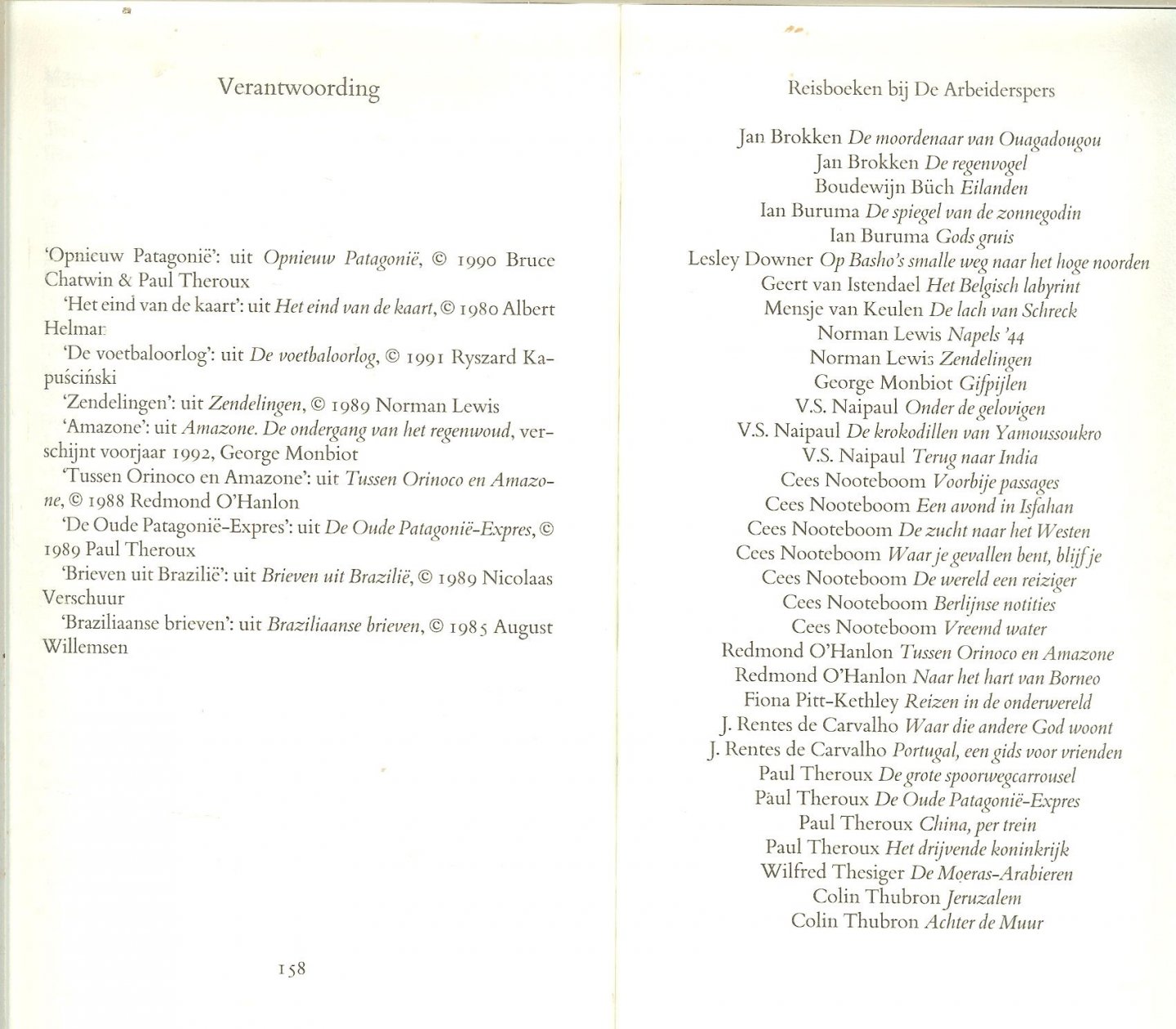 | Schrijver: | Bruce Chatwin, Albert Helman, Ryszard Kapuscinski. Norman Lewis, George Monboit, Redmond O Hanlon, Paul Theroux, Nicolaas Verschuur, August Willemsen |