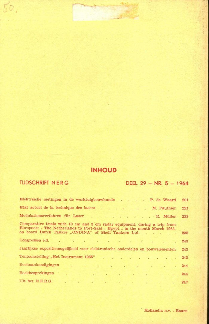 | Titel: | Tijdschrift van het Nederlands Elektronica- en Radiogenootschap - Deel 29 - Nr. 5 - 1964 |