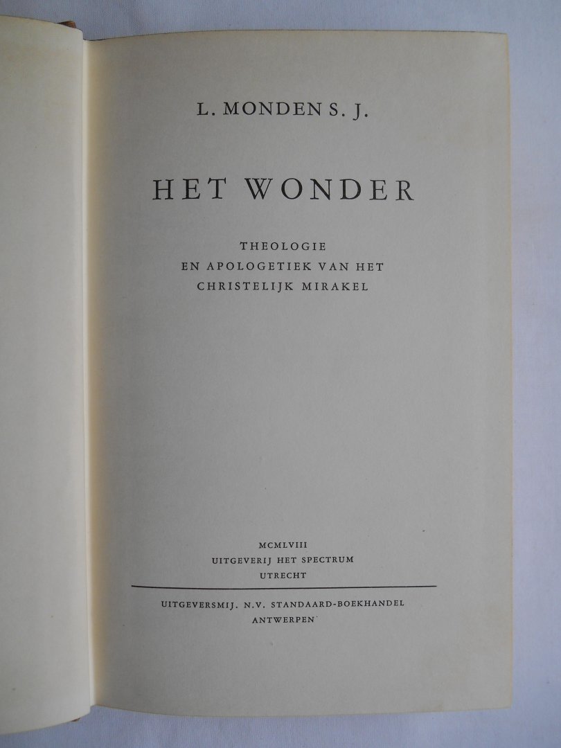Monden, L (S.J). - Het Wonder - Theologie en Apologetiek van het Christelijk mirakel. Monden, L (S.J). - Het Wonder - Theologie en Apologetiek van het Christelijk mirakel.