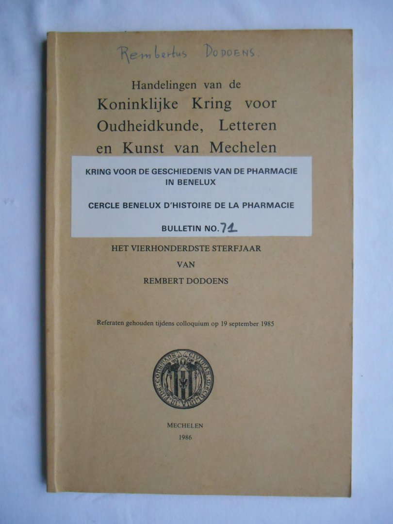 Meer info: Cercle Benelux D'Histoire de la Pharmacie - Kring voor de geschiedenis van de pharmacie in Benelux, referaten tijdens colloquium, 1985.