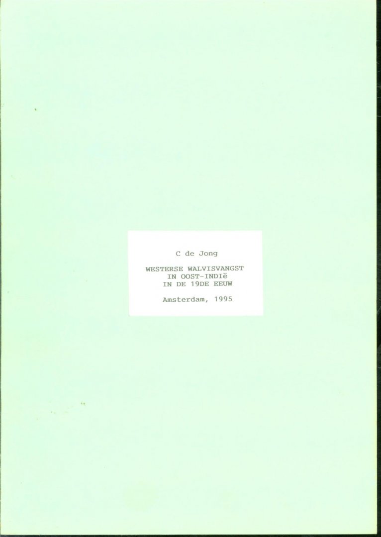 Jong, C. de - Westerse walvisvangst in