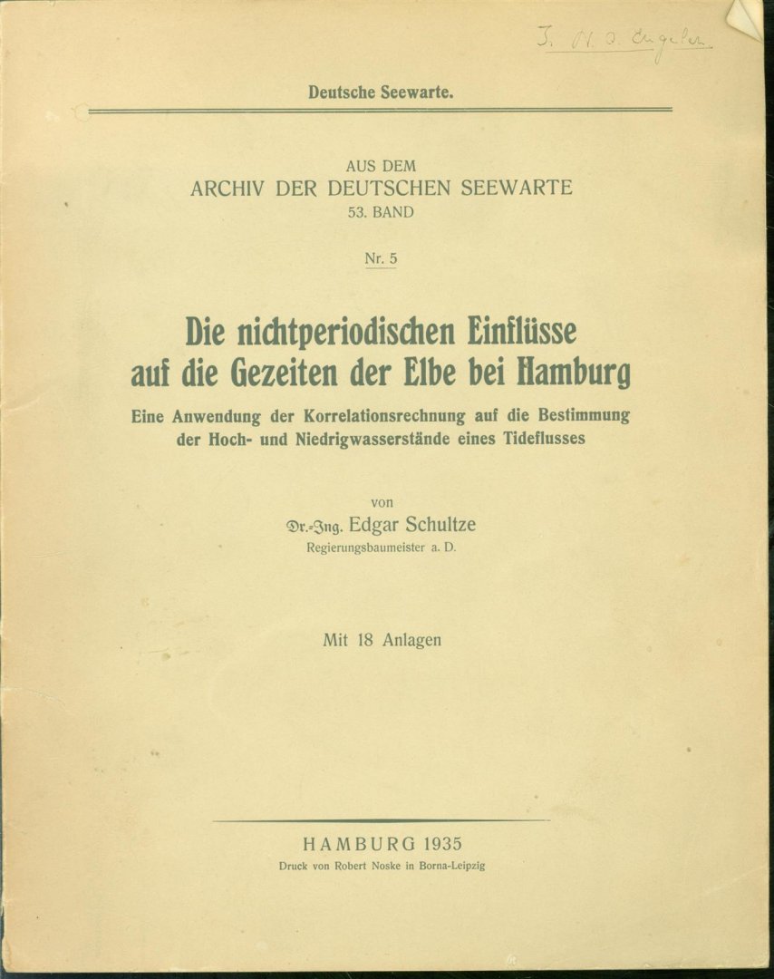 | Titel: | Die nichtperiodischen Einflüsse auf die Gezeiten der Elbe bei Hamburg; eine Anwendung der Korrelationsrechnung auf die Bestimmung der Hoch- und Niedrigwasserstände eines Tideflusses. |