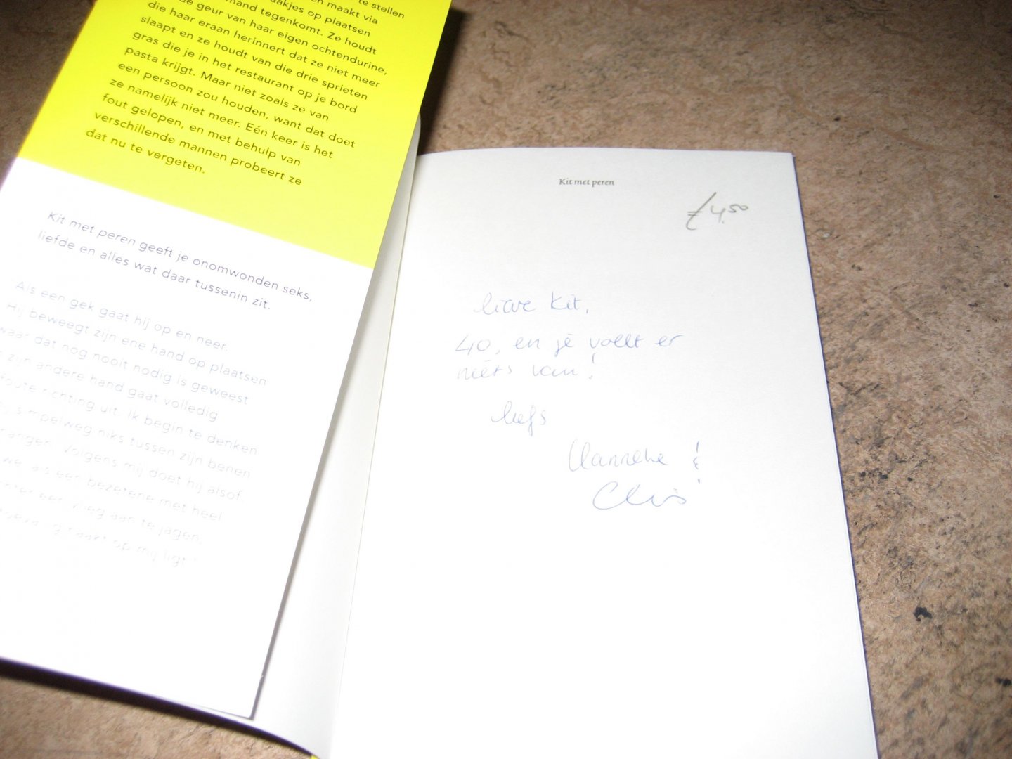 De debuutroman van de Hasseltse Nele Reymen is juist uitgekomen: "Kit met Peren". Een gedurfde roman die je gegarandeerd blozende wangetjes bezorgt… Benieuwd? Dit is het verhaal: Kit verzamelt zelfgeschreven post-its, stelt zich bij iedere man voor hoe zijn piemel eruitziet en maakt via voicemails afspraakjes op plaatsen waar ze niemand tegenkomt. Ze gelooft in 'houden van', maar in beperkte mate. Ze houdt van sokken met antisliprubbertjes op de voetzool en ze houdt van de geur van haar eigen ochtendurine, die haar eraan herinnert dat ze niet meer slaapt. Ze houdt van die drie sprieten gras die je in het restaurant op je bord pasta krijgt en ze houdt van scheuten die aan aardappels groeien wanneer je die te lang laat liggen. Ze houdt van eten, maar niet zoals ze van een persoon zou houden. Dat doet ze namelijk niet. Niet meer...