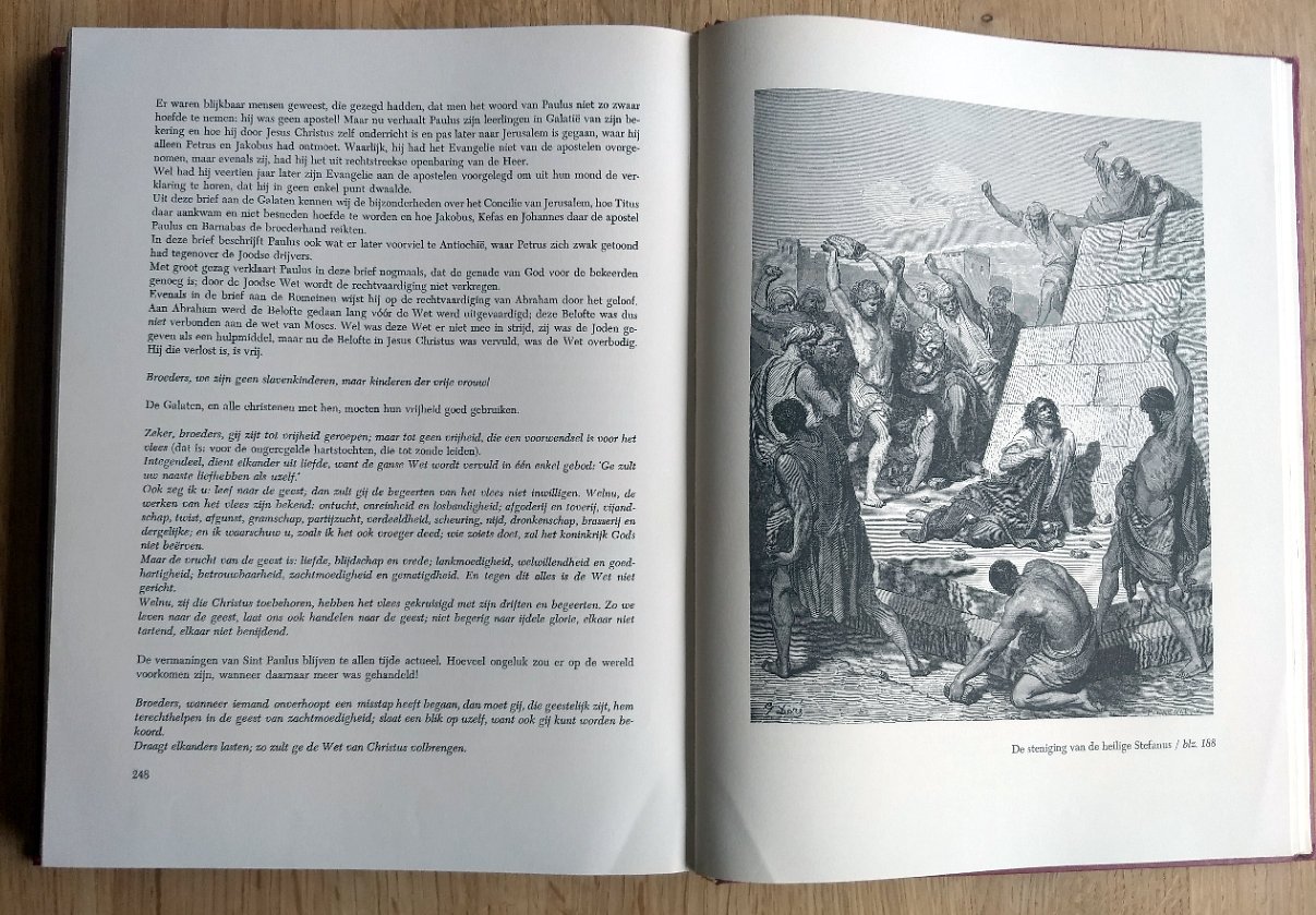 | Titel: | BIJBELSCHE GESCHIEDENIS: Geschiedenis van het oude testament & Geschiedenis van het nieuwe testament - Twee kunstleren banden in casette, met in totaal 117 illustraties van Gustave Doré |