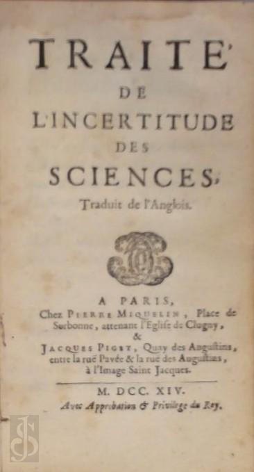 Thomas Baker - Traité de l'incertitude des Sciences [par Thomas