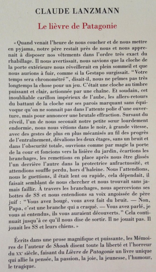 Lanzmann, Claude - Le lievre de Patagonie - Memoires