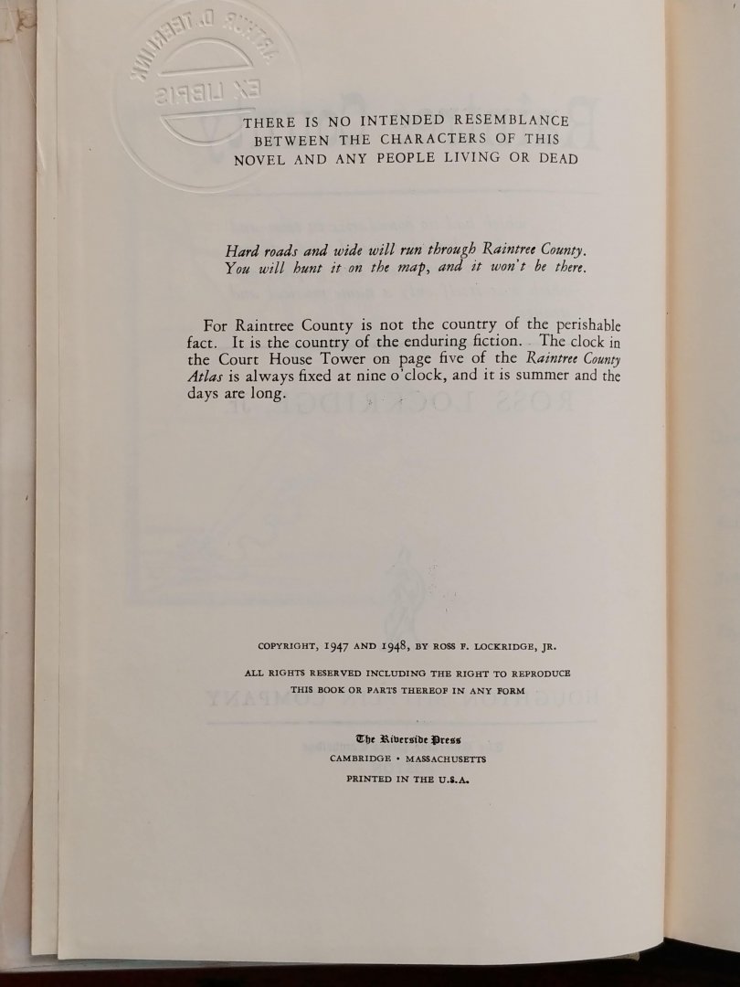 Lockridge, Jr., Ross - Raintree County (Rare! Original first Ed