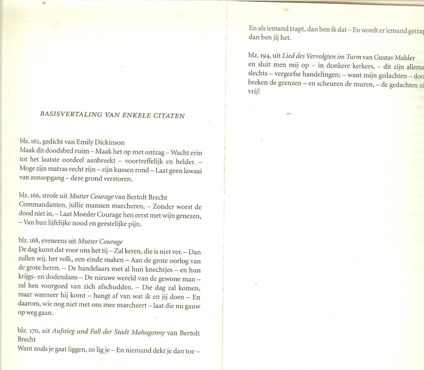 De cerebrale stijl van dit boek wedijvert met die van Mulisch, de opzet met Hermans, de vele verwijzingen naar de klassieke oudheid hadden van Claus kunnen zijn. Het geheel is van Noordervliet. Een 44-jarige advocate, Augusta de Wit, gaat op zoek naar haar verleden. Dat blijkt moeilijk. Haar voornaam heeft ze van haar vader, een Duitse soldaat; de achternaam niet van haar stiefvader, maar van haar moeder. In haar studietijd (1968!) trouwt ze met een revolutionaire student met een joodse achtergrond. In het jaar dat de Berlijnse muur valt, komt ook voor haar de Wende. Soms is het boek iets te geconstrueerd (Augusta is in 1968 in Parijs èn in Praag; in 1989 in Weimar). Het thema dat ze aansnijdt is echter van alle tijden: schuld en boete.