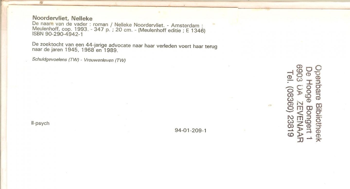 | Titel: | De naam van de vader. Dit is een pijnlijke roman van grote klasse, geschreven met een troostrijke vitaliteit en een enorme finesse. De naam van de vader werd bekroond met de Multatuliprijs 1994. |
