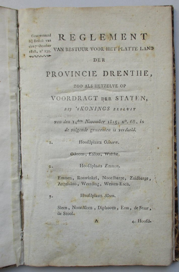 | Titel: | Reglement van bestuur voor het platte land der provincie Drenthe |