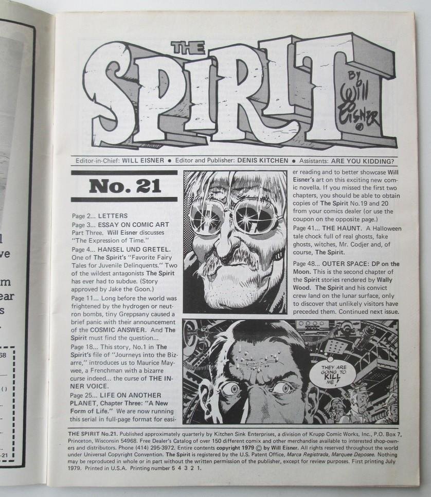 Cult striptijdschrift van de Amerikaanse striptekenaar Will Eisner (1917-2005) met essay 'The Expression of Time' en zeer gave graphic novel stripverhalen in zwart-wit. Een abonnement kostte $7,- in 1979. Tekst in het Engels. ¶ Will Eisner was een van de pioniers van de underground comicsscene in de USA.