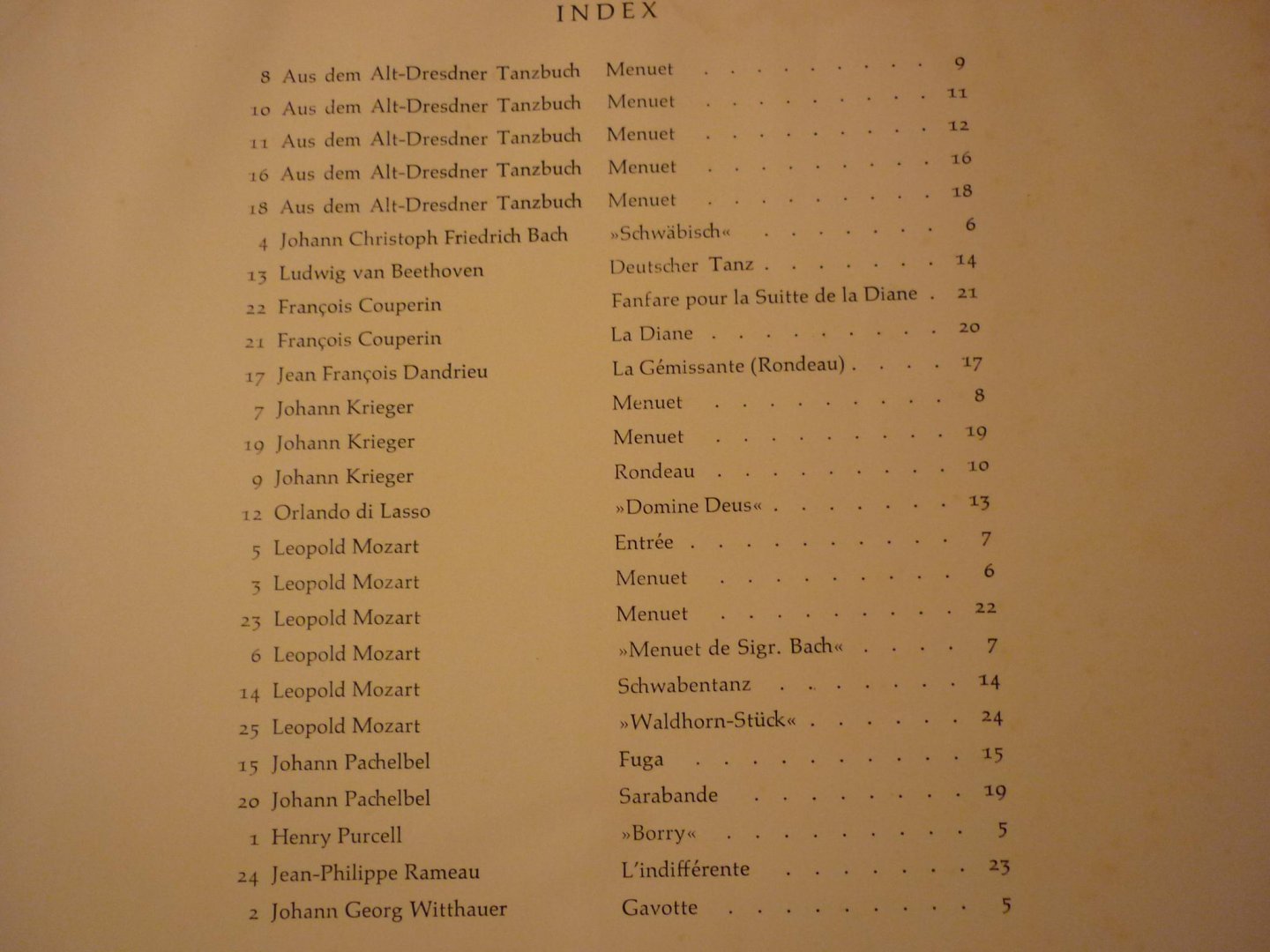 COMPOSITIONS FROM: J. CHR. FR. BACH, BEETHOVEN, COUPERIN, DANDRIEU, KRIEGER, ORLANDO DI LASSO, L. MOZART, PACHELBEL, PURCELL, RAMEAU, WITTHAUER |