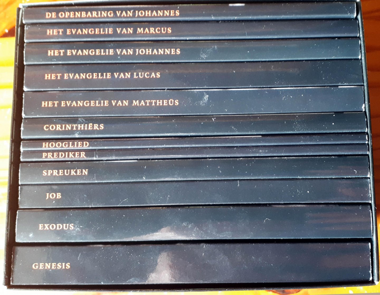 Oude Testament: Genesis, Exodus, Job, Spreuken, Prediker, Hooglied Nieuwe Testament: Het Evangelie van Mattheus, Het Evangelie van Marcus, Het Evangelie van Lucas, Het Evangelie van Johannes, Corinthiërs, De Openbaring van Johannes |