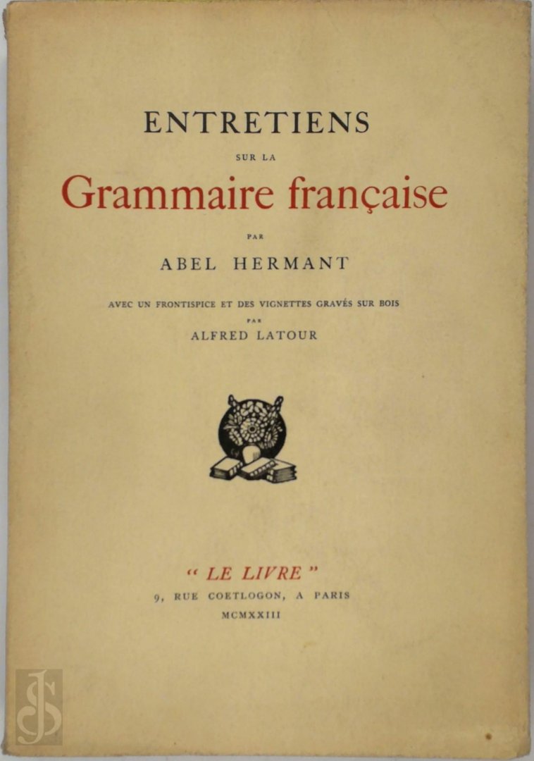 | Titel: | Entretiens sur la Grammaire Française avec un frontispice et des vignettes gravés sur bois par Alfred Latour |