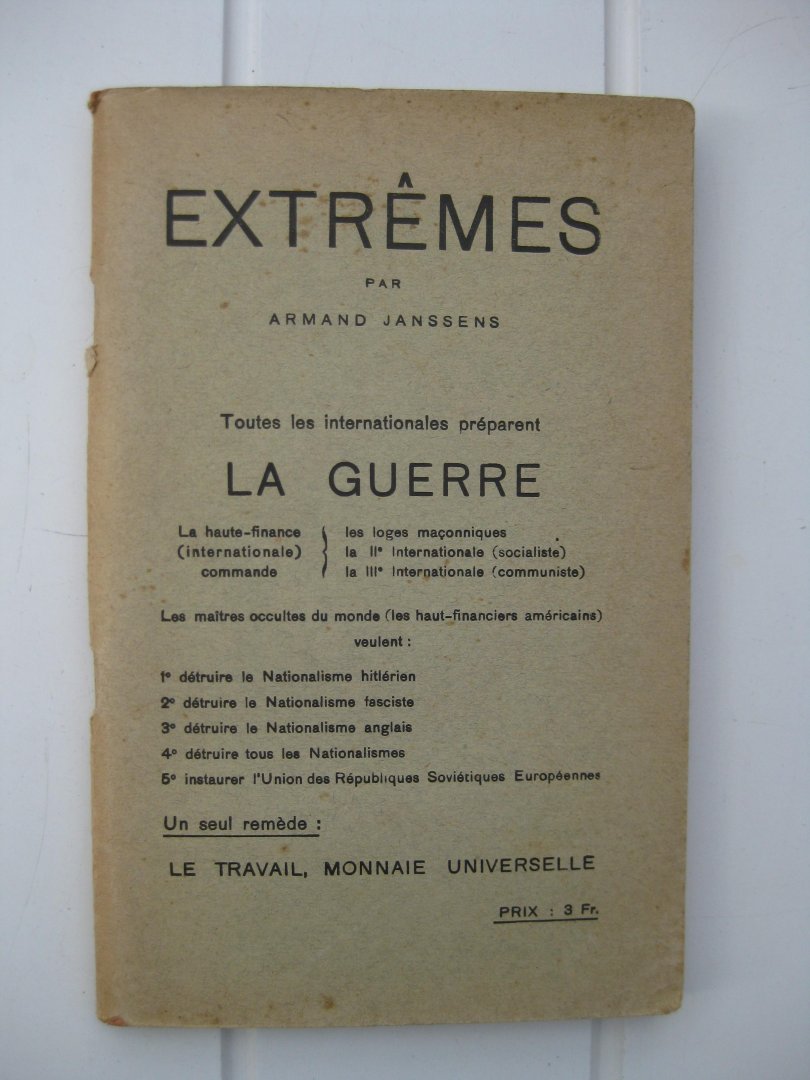 | Titel: | Extrêmes. Toutes les internationales préparent la guerre. Un seul remède: Le travail, monnaie universelle. |