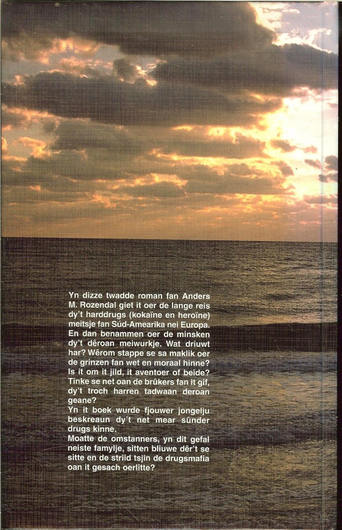 Yn dizze twadde roman fan Anders M. Rozendal giet it oer de lange reis dy't harddrugs (kokaïne en heroïne) meitsje fan Súd-Amearika nei Europa. En dan benammen oer de minsken dy't dêroan meiwurkje. Wat driuwt har? Wêrom stappe se sa maklik oer de grinzen fan wet en moraal hinne? Is it om it jild, it aventoer of beide? Tinke se net oan de brukers fan it gif, dy't troch harren tadwaan deroan geane? Yn it boek wurde fjouwer jongelju beskreaun dy't net mear sunder drugs kinne. Moatte de omstanners, yn dit gefal neiste famylje, sitten bliuwe dêr't se sitte en de striid tsjin de drugsmafia oan it gesach oerlitte?
