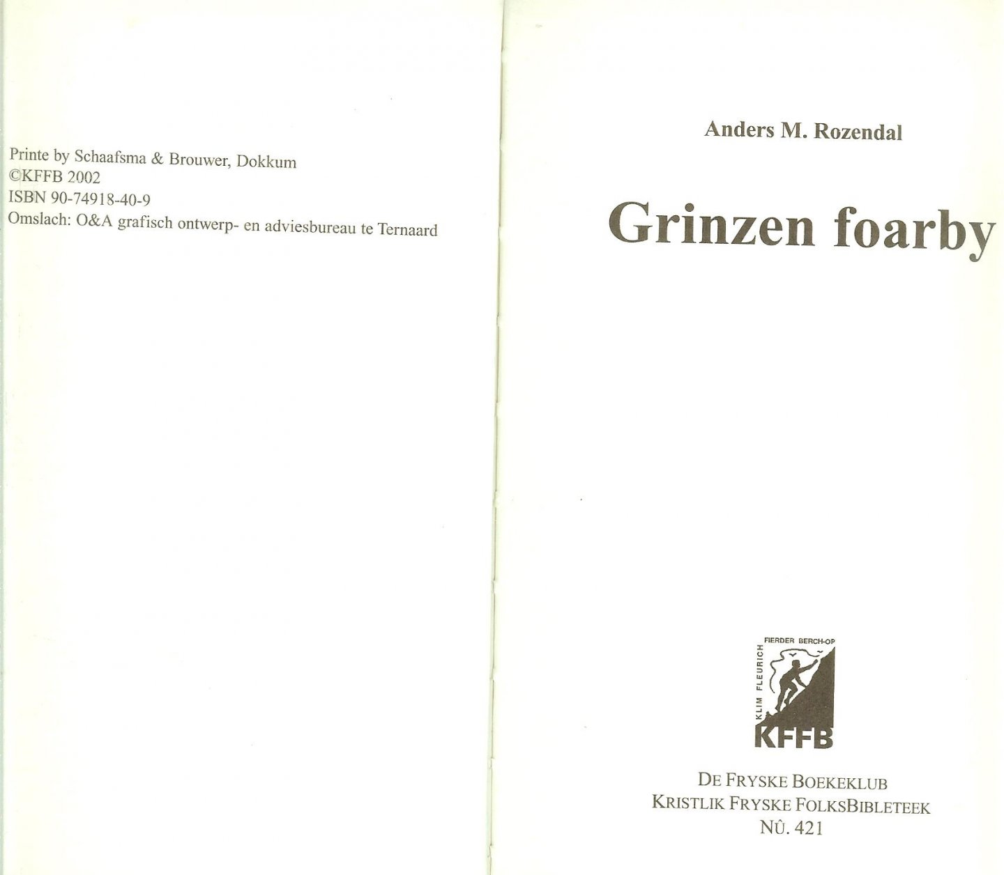 | Uitgever: | De Fryske Boekeklub Kristlik Fryske Folks Bibleteek Nu 421 uut 2002 Printed by Schaafsma & Brouwer te Dokkum |