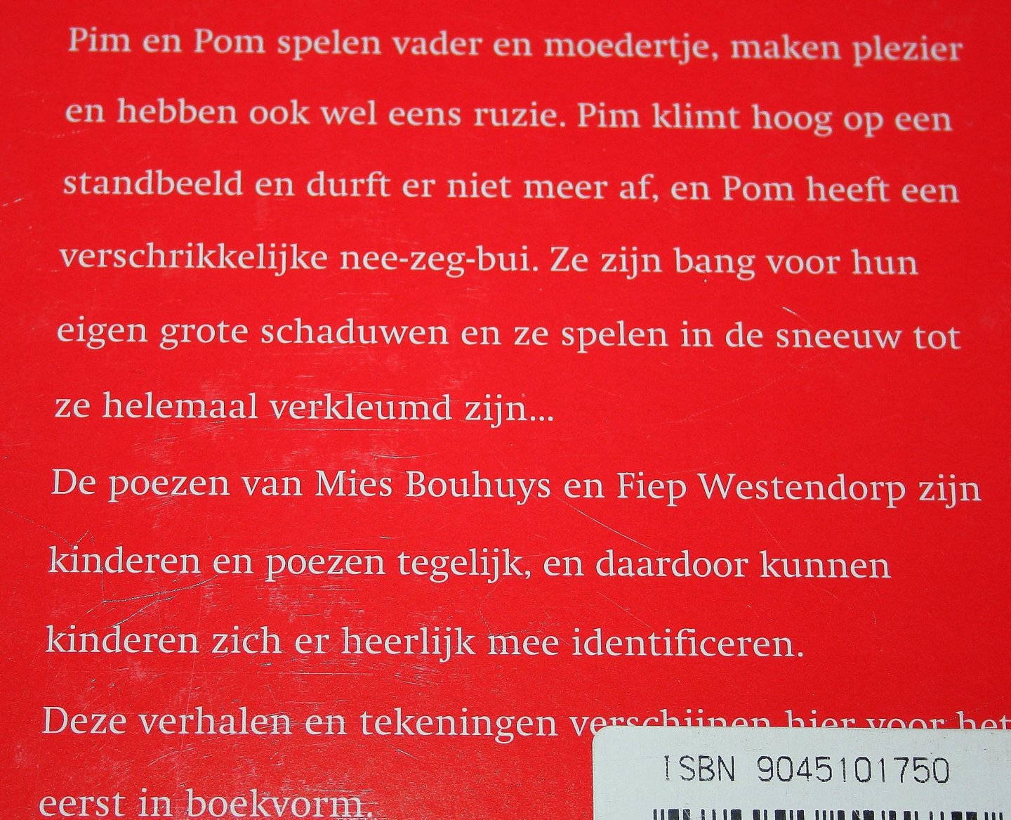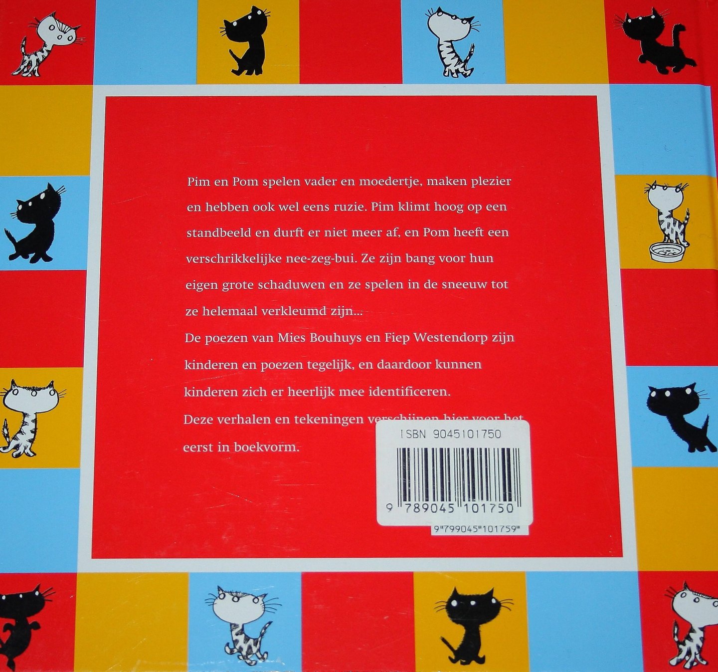 Pim-met-streepjes wil nogal eens ongeremd doordraven, Pom is rustiger en verstandiger. Zo op het eerste gezicht zijn ze twee tegenpolen. Maar ze kunnen geen dag zonder elkaar. In deze teruggevonden en niet eerder in boekvorm verschenen verhalen spelen ze vadertje en moedertje en maken ruzie, Pim klimt op een standbeeld ('de generaal') en durft er niet meer af, ze rennen achter vlinders aan, en dromen over dagjeskatten, Pom heeft een verschrikkelijke nee-zeg-bui, ze zijn bang voor hun eigen grote schaduwen, ze spelen in de sneeuw tot ze helemaal verkleumd zijn... Pim en Pom zijn kinderen en poezen tegelijk, en daardoor kunnen kinderen zich er heerlijk mee identificeren.