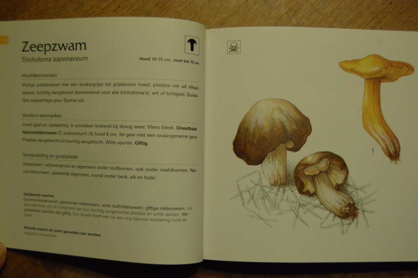 Beschrijving van een aantal West-Europese paddenstoelen. De paddenstoelen zijn per groeiplaats gegroepeerd. Deze groeiplaatsen (loofbos, naaldbos, gemengd bos, grasland en parken, op hout) zijn te herkennen aan een gekleurde band onder aan de pagina. Iedere beschrijving bestaat uit hoofd- en verdere kenmerken, vermelding van verspreiding en groeiplaats, eventuele gelijkende soorten en groeiperiode. Ook wordt aangegeven of de paddenstoel giftig is. De beschrijving is vergezeld van een goede, maar vrij sobere, kleurentekening.