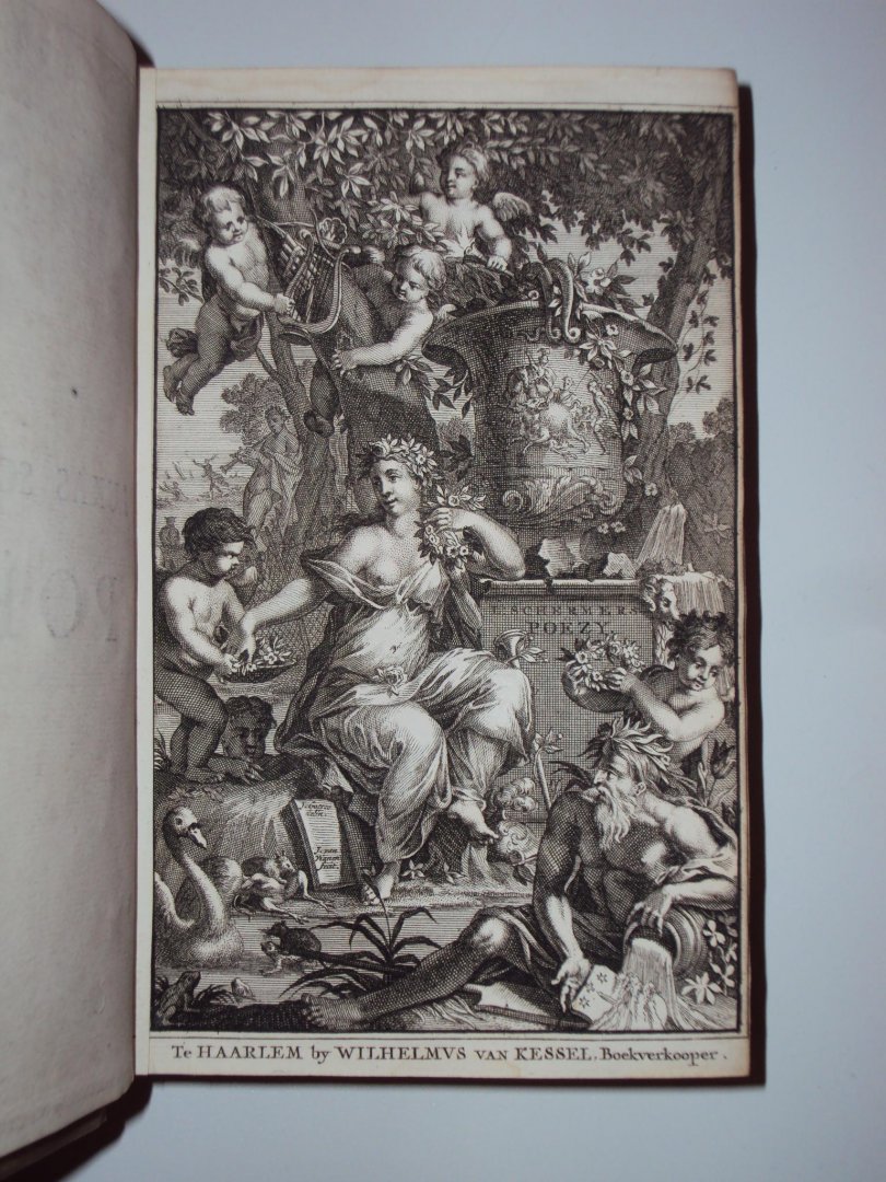 Complete with engraved frontispiece and 20 plates by J. van Vianen. Scheepers I, 205. ""Verder etste Jan van Vianen de titelpagina van de in 1712 gepubliceerde Poëzy van de Haarlemse dichter en student in de rechten Lukas Schermer die in 1711 op 22-jarige leeftijd was overleden. Het boek geldt als een der fraaist geïllustreerde literaire werken uit de 18e eeuw en men neemt aan dat ook de ongesigneerde etsen in de tekst van de hand van Jan van Vianen zijn."" (Cat. Harlemia illustrata 220-224). |