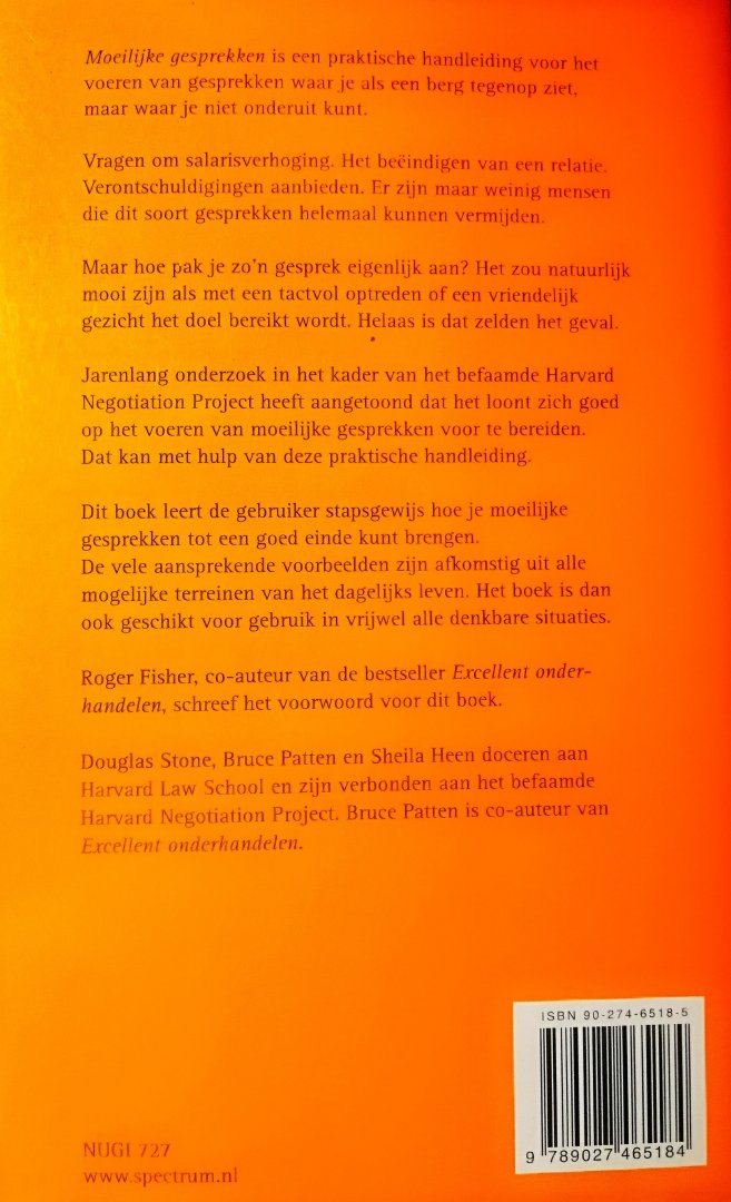 ![Stone , Douglas . & Bruce Patton . & Sheila Heen . [ isbn 9789027465184 ] 0226 - Moeilijke Gesprekken . ( Handleiding voor het voeren van gesprekken waar je als een berg tegenop ziet, maar waar je niet onderuit komt . Met je baas , je partner , je vrienden , je kinderen , je klanten . ) Vragen om salarisverhoging. - Stone , Douglas . & Bruce Patton . & Sheila Heen . [ isbn 9789027465184 ] 0226 - Moeilijke Gesprekken . ( Handleiding voor het voeren van gesprekken waar je als een berg tegenop ziet, maar waar je niet onderuit komt . Met je baas , je partner , je vrienden , je kinderen , je klanten . ) Vragen om salarisverhoging. -](https://images.boekwinkeltjes.nl/medium/0S12ikAKCbQuu6DR4DpB.jpg)