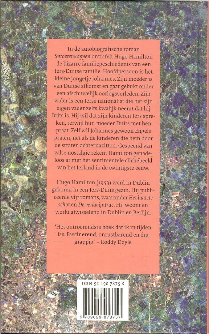 In de autobiografische roman Sproetenkoppen ontrafelt Hugo Hamilton de bizarre familiegeschiedenis van een Iers-Duitse familie. Hoofdpersoon is het kleine jongetje Johannes. Zijn moeder is van Duitse afkomst en gaat gebukt onder een afschuwelijk oorlogsverleden. Zijn vader is een Ierse nationalist die het zijn eigen vader zelfs kwalijk neemt dat hij Brits is. Hij wil dat zijn kinderen Iers spreken, terwijl hun moeder Duits met hen praat. Zelf wil Johannes gewoon Engels praten, net als de kinderen die hem door de straten achternazitten. Gespeend van valse nostalgie rekent Hamilton genadeloos af met het sentimentele clich eld van het Ierland in de twintigste eeuw. Hugo Hamilton (1953) werd in Dublin geboren in een Iers-Duits gezin. Hij publiceerde vijf romans, waaronder Het laatste schot en De verdwijntruc. Hij woont en werkt afwisselend in Dublin en Berlijn. 'Het ontroerendste boek dat ik in tijden las. Fascinerend, onrustbarend en grappig.' - Roddy Doyle |