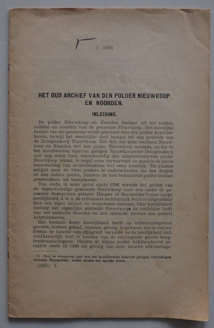 n.b. - Het oud archief van den polder Nieuwkoop en Noorden (oud