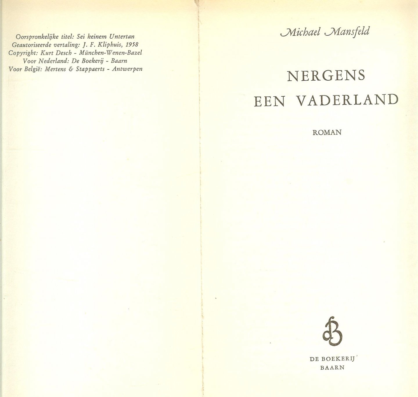 Mansfeld Michael Vertaling J.F. Kliphuis - Nergens een Vaderla