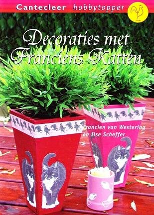 Decoraties met Franciens Katten Decoraties met Franciens Katten. Iedere kattenliefhebber is fan van de prachtige illustraties van Francien van Westering. Deze illustraties zijn nu ook op tissuepapier verschenen, verkrijgbaar in de hobbywinkel. Dit papier verwerk je net zoals servetten maar met het grote voordeel dat het niet uitmaakt welke kleur je het voorwerp schildert want het tissuepapier schijnt niet door. Gekozen is voor eenvoudig geschilderde voorwerpen zodat de illustraties van Francien's katten de hoofdrol spelen. |