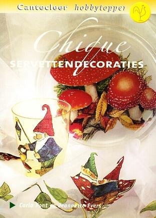 Chique servettendecoraties Chique servettendecoraties. In deze uitgave wordt beschreven hoe je het huis kunt aankleden met werkstukken, versierd met servetten. In het eerste hoofdstuk wordt de algemene werkwijze uitgebreid beschreven en worden ook de basisbenodigdheden vermeld. Per werkstuk staat uitgelegd welke werkwijze men moet gebruiken en welke spullen er extra nodig zijn. De resultaten zijn te bewonderen op paginagrote kleurenfoto's. Ook zijn er tekeningen en patronen bij de werkstukken te vinden. Het gaat om gebruiksvoorwerpen zoals dozen, lijstjes, lampionnen en wegwerpservies. |