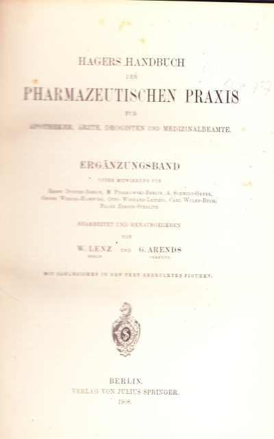 W. Lenz und G. Arends - Hagers Handbuch der Pharmazeutischen Pr