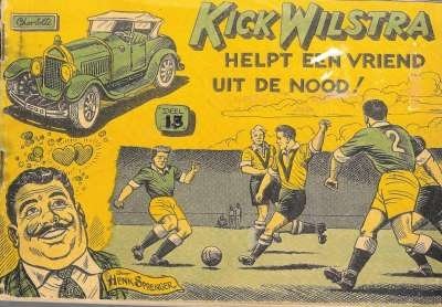 Kick Wilstra helpt een vriend uit de nood! Kick Wilstra helpt een vriend uit de nood!. Deel 13 uit de strip serie, de avonturen van Kick Wilstra. Kick Wilstra ziet het licht in 1949, dankzij Henk Sprenger, striptekenaar uit Oost-Knollendam. Met Kick Wilstra creëert Sprenger een voetballer die de kwaliteiten van Kick Smit, Faas Wilkes en Abe Lenstra in zich verenigt. Een voetbalheld die tot dan toe alleen in jongensdromen voorkwam: een wonder-midvoor! Kick Wilstra, met zijn kenmerkende blonde lok, scoort uit alle standen, in alle teams waar hij voor uitkomt: in Veendorp, bij Victoria, Malton Rovers en Titan, en natuurlijk in het Nederlands Elftal. Zijn favoriete goal is de winnende, bij voorkeur gescoord in de laatste minuut, met een omhaal in de kruising. Ook buiten het veld stelt Kick Wilstra niet teleur. Als bestrijder van het kwaad en redder in de nood beleeft hij vele avonturen, bijgestaan door zijn altijd bezorgde vrouw Jannie en zijn zonen Rob en Rudi. Tien jaar lang, tot 1959, bracht Kick Wilstra kleur in het leven van menige schooljongen, in een tijd waarin televisie nog nauwelijks bestond en de gezagsverhoudingen nog duidelijk waren. |