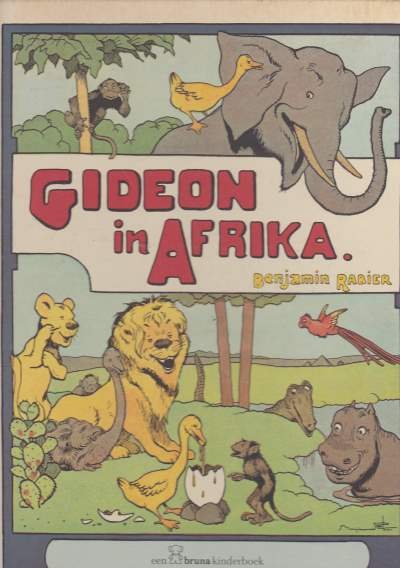 Gideon in Afrika Gideon in Afrika. De franse eend Gideon wil eens zien wat er in Afrika te beleven is. Hij installeert zich op de vleugel van een vliegtuig(!) en landt in de woestijn. Daar sluit hij vriendschap met een aap en ontmoet in het oerwoud vele andere dieren, vrienden en vijanden. De pientere eend verzint de meest fantastische manieren om zijn vijanden slimmer af te zijn en dat gebeurt nogal eens op wrede wijze. Prentenboek in stripvorm, met zacht getinte illustraties. |