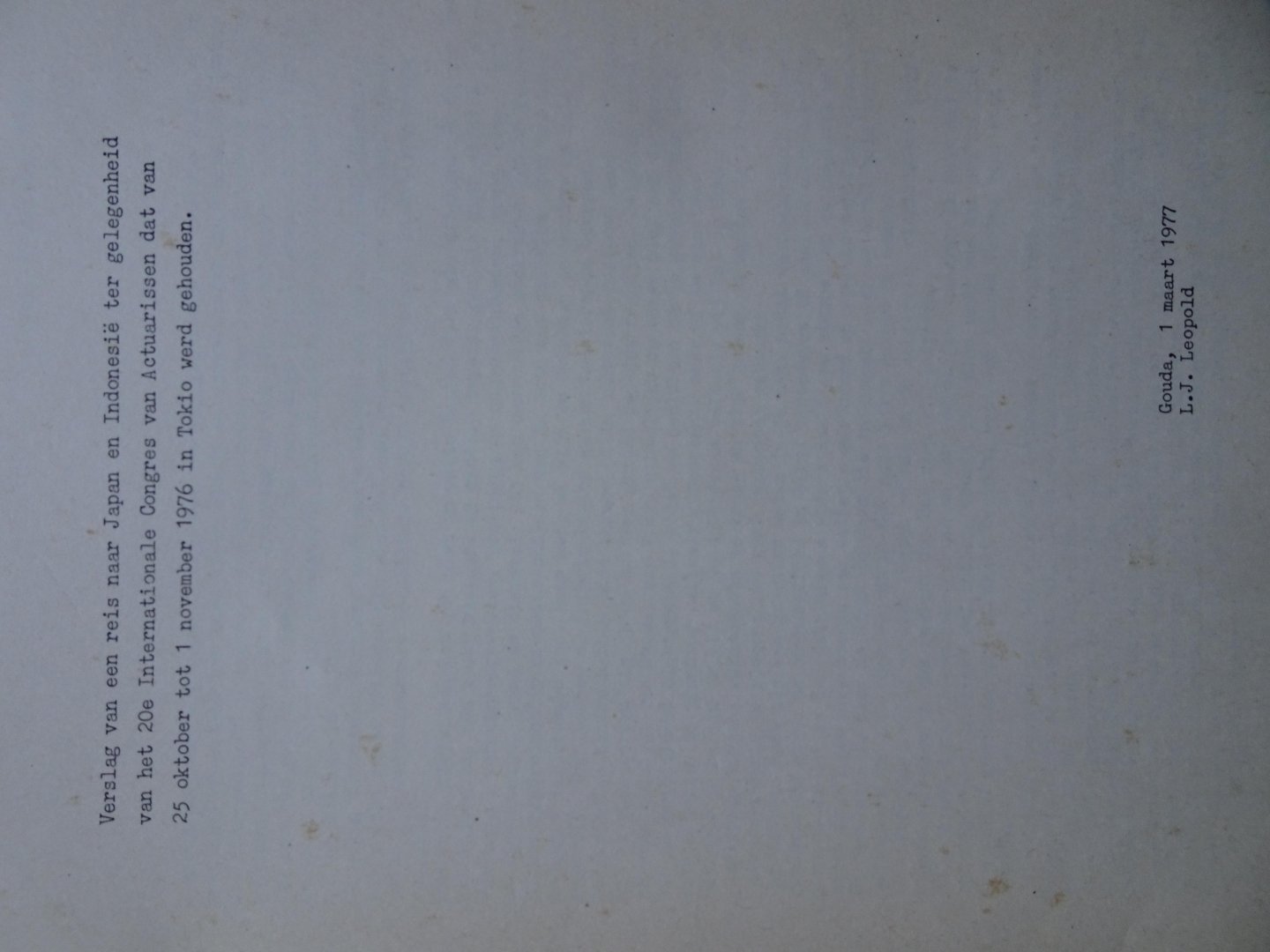 | Titel: | VERSLAG VAN EEN REIS NAAR JAPAN EN INDONESIË t.g.v. het 20e Internationale Congres van Actuarissen dat van 25 oktober tot 1 november 1976 in Tokio werd gehouden |