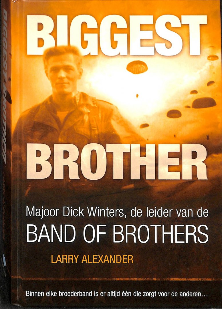 BIGGEST BROTHER De leden van de 101e Luchtmachteenheid van de Verenigde Staten, de E-Company of de Band of Brothers, zijn legendarisch. De groep was meer dan een stel broeders in het leger. Het was een familie. In man zagen de soldaten een leider, een gids en de verwezenlijking van moed en toewijding: majoor Dick Winters. Hij werd unaniem geaccepteerd als de leider van de groep. Na de oorlog paste hij zich geleidelijk aan het burgerbeastaan aan, maar later werd hij opnieuw onder de wapenen geroepen voor de oorlog in Korea. Pas jaren daarna kreeg hij wereldwijde bekendheid en erkenning. Niet omdat hij die opzocht, maar door de publicatie van het boek Band of Brothers van Stephen E. Ambrose, dat eveneens bij Uitgeverij BZZT H verscheen. Het inspireerde Steven Spielberg en Tom Hanks tot het produceren van een gelijknamige televisieserie over de legendarische luchtmachteenheid. Zwoel de serie als het boekwas een doorslaand success. Larry Alexander is journalist en columnist. Al vele jaren wint hij prijzen voor zijn uitstekende journalistieke werk. Hij groeide op in dezelfde stad en in dezelfde straat als Dick Winters, maar dan dertig jaar later. |