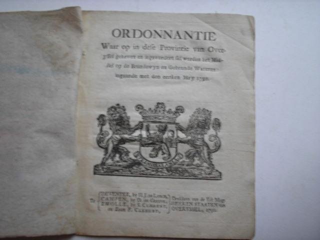 | Titel: | Ordonnantie. Waar op in deze Provintie Overyssl geheven en ingevordert zal worden het middel op Brandewyn en gebrande Wateren: ingaande met den eersten Mey 1791 |