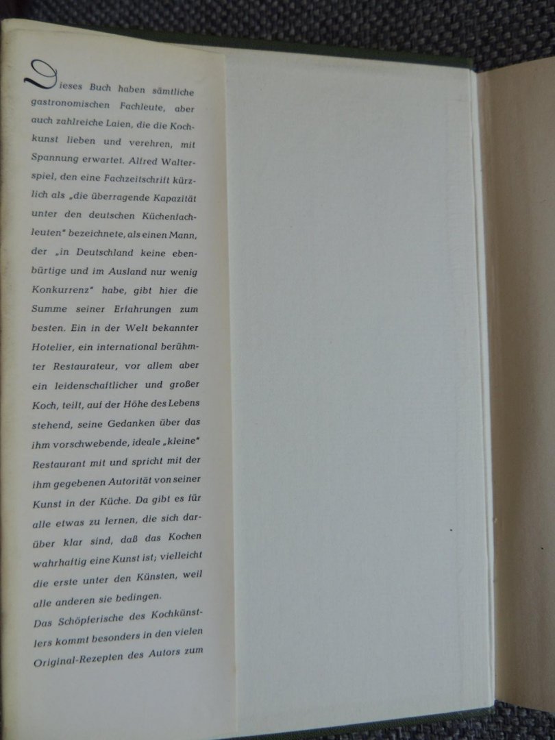 | Titel: | Meine Kunst in Küche und Restaurant. GESIGNEERD door Alfred Walterspiel. Erfahrungen und kulinarische Anschauungen eines internationalen Kochs. Mit über hundert eigenen Rezepten |