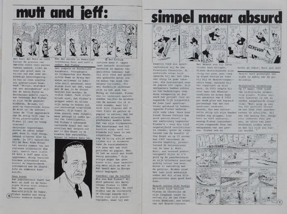 Content: Interview with Joost Swarte, illustrated with some of his work; Article on Bud Fischer's Mutt & Jeff; Insert "De Courier" with reviews of various magazines: Het Gewicht, Vrije Balloen, Eppo, Tante Leny; Dik Williams; Berck.
