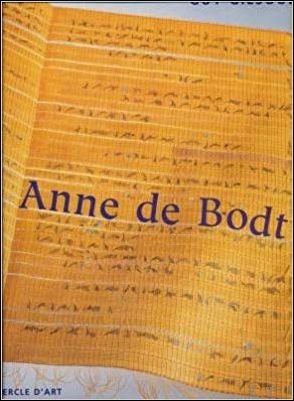 Born in 1931 in Ghent, she decided her artistic career in 1949 in Rome, where her father ran the Academia Belgica. Graduated from the l'Académie des Beaux-Arts de Bruxelles, she will wait for the early 70s to concentrate on her art, what she slowly prepared during the time of the education of her 4 children. The exhibitions will then succeed as well as the travels with her husband. Everything is confirming her intuition she had acquired in sacred texts of India and the writings of the great mystics earlier in her life. The work of Anne de Bodt oscillates between surprising application of traditional art and sculptures, in which the weaving is used only for a limited part. Silk strips cut paper, wood fragments and sheet music invent a world full of oriental contemplation, Bach's music and fine poetry confirmed by the choice of colors. [extract from Jacqueline Guisset, La Tapisserie contemporaine, un art en devenir, 2003] On n'écrit pas sur les " travaux " d'Anne de Bodt. Au mieux, accompagne-t-on une ?uvre dont les objets donnés ne sont que l'expression provisoire. L'?uvre donc convoque ce temps nécessaire que les Grecs nomment Kairos et, pour le dire, des gestes artistiques d'une grande modestie, répétés inlassablement mais jamais à l'identique avec des matériaux d'une extraordinaire pauvreté comme si tout, ici, ne tenait qu'à un fil éternellement noué puis dénoué. Pour dire l'?uvre d'Anne de Bodt, il fallait donc accepter l'esprit de l'?uvre. Renoncer au temps de l'instant présent et lui préférer la durée et l'attention flottante. Au discours d'historien, emprunter la voie des courants plus légers, se laisser emporter. Il fallait regarder longuement les ?uvres, les apercevoir de loin, puis de plus près, se pencher et lire peut-être certains poèmes, certains haïkus. Il fallait aussi écouter la musique sacrée d'ici et d'ailleurs, d'hier et d'aujourd'hui, se promener avec Anne de Bodt dans le jardin, puis s'asseoir et parler.