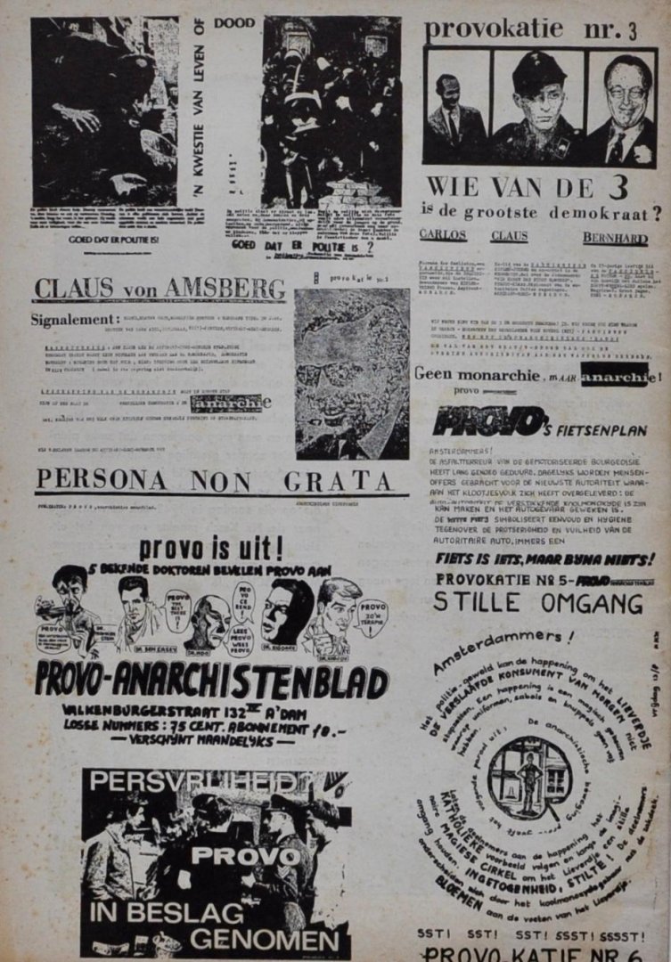 Content: Dutch cultural magazine. Issue on Provo and the BVD. Very nice reproductions of a number of Provo leaflets on the back cover. Overall condition: Very Good. Magazine 1st Edition 1st Printing. Size: 24.3 x 16.8 Cm. Pages: 32. Language: Dutch. |